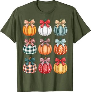 Get ready for a feast of fun! This Thanksgiving, skip the formal wear and opt for something that's both festive and comfortable. This isn't just a t-shirt; it's a celebration of family, food, and fun, all brought to life by a unique, artist-driven design. The "Coquette Bow Pumpkin Season Thanksgiving Autumn Fall Leaves T-Shirt" tee is the perfect recipe to show off your holiday spirit. Whether you're the official turkey carver, the designated pie tester, or simply here to enjoy the company, this tee is your perfect uniform for a memorable Turkey Day.