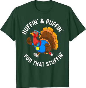 Get ready for a feast of fun! This Thanksgiving, skip the formal wear and opt for something that's both festive and comfortable. This isn't just a t-shirt; it's a celebration of family, food, and fun, all brought to life by a unique, artist-driven design. The "Funny Huffin' For That Stuffin' Turkey Run Trot Thanksgiving T-Shirt" tee is the perfect recipe to show off your holiday spirit. Whether you're the official turkey carver, the designated pie tester, or simply here to enjoy the company, this tee is your perfect uniform for a memorable Turkey Day.