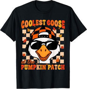 Get ready for a feast of fun! This Thanksgiving, skip the formal wear and opt for something that's both festive and comfortable. This isn't just a t-shirt; it's a celebration of family, food, and fun, all brought to life by a unique, artist-driven design. The "Groovy Coolest Goose at The Pumpkin Patch Fall Thanksgiving T-Shirt" tee is the perfect recipe to show off your holiday spirit. Whether you're the official turkey carver, the designated pie tester, or simply here to enjoy the company, this tee is your perfect uniform for a memorable Turkey Day.