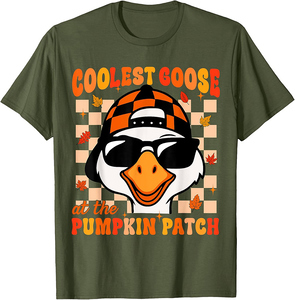 Serve Up Some Style: The "Groovy Coolest Goose at The Pumpkin Patch Fall Thanksgiving T-Shirt" T-Shirt!