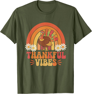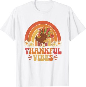 Get ready for a feast of fun! This Thanksgiving, skip the formal wear and opt for something that's both festive and comfortable. This isn't just a t-shirt; it's a celebration of family, food, and fun, all brought to life by a unique, artist-driven design. The "Retro Vintage Thankful Vibes Turkey Rainbow Thanksgiving T-Shirt" tee is the perfect recipe to show off your holiday spirit. Whether you're the official turkey carver, the designated pie tester, or simply here to enjoy the company, this tee is your perfect uniform for a memorable Turkey Day.